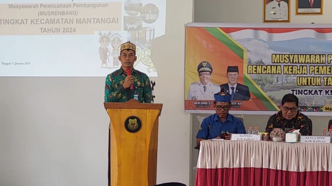 Kuala Kapuas – Musyawarah Rencana Pembangunan (Musrenbang) tingkat Kecamatan Mantangai, Kabupaten Kapuas digelar di aula kantor Kecamatan Mantangai, Kamis (11/1/2024).