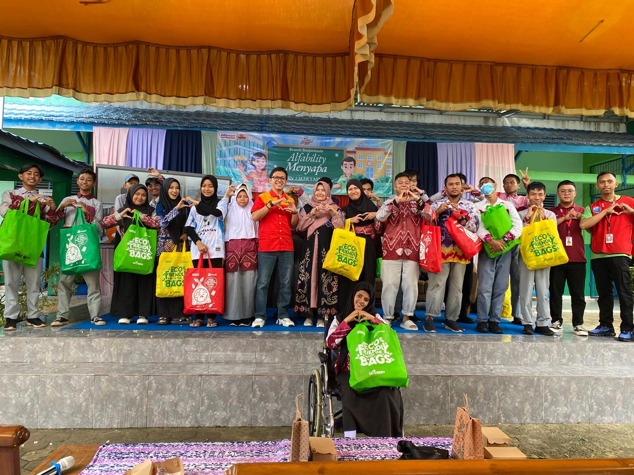 Selain menghadirkan kisah-kisah inspiratif bagi para siswa, program ini juga dikemas dengan aksi sosial dari Alfamart melalui pemberian puluhan paket goodie bag berisi biskuit, susu, dan berbagai produk lainnya untuk para peserta.