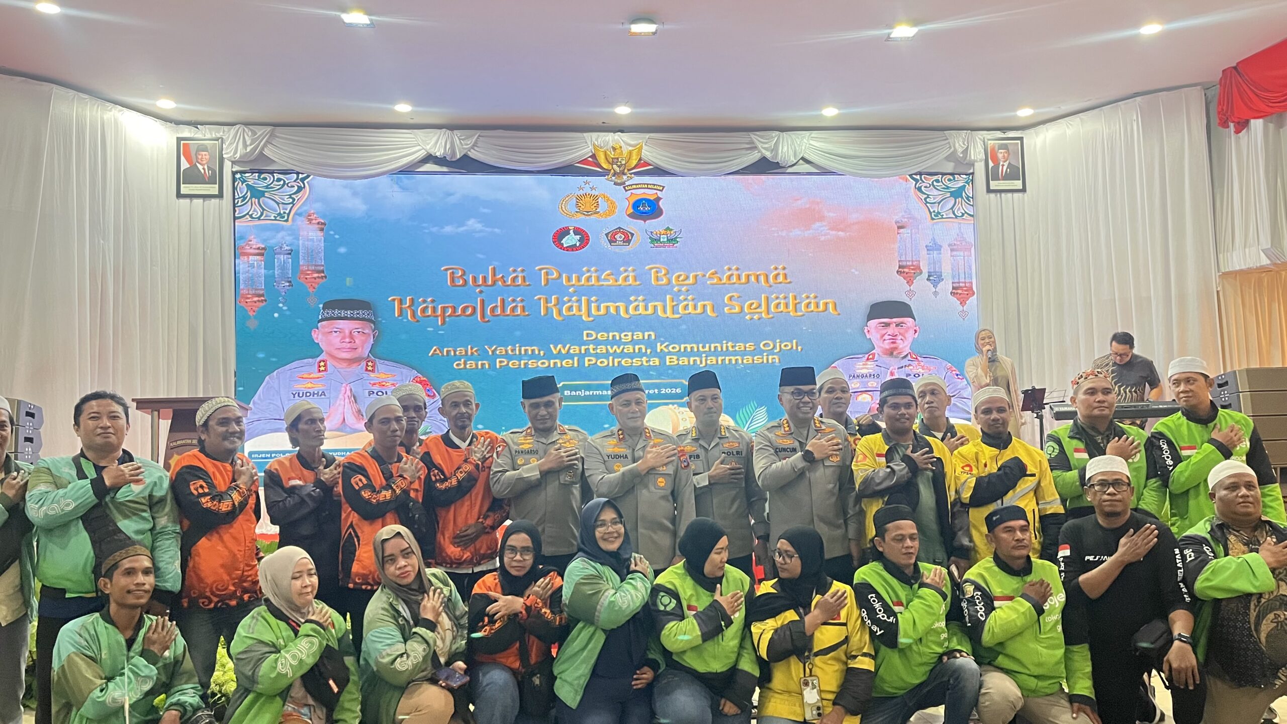 BANJARMASIN – Kepolisian Daerah Kalimantan Selatan (Polda Kalsel) menggelar kegiatan buka puasa bersama yang khidmat dan hangat. Acara ini bukan sekadar seremoni formal, melainkan ruang silaturahmi untuk mempererat hubungan antara Polri, insan pers, pengemudi ojek online (ojol), hingga anak yatim, yang digelar di Aula Polresta Banjarmasin, pada Kamis (05/03/26)