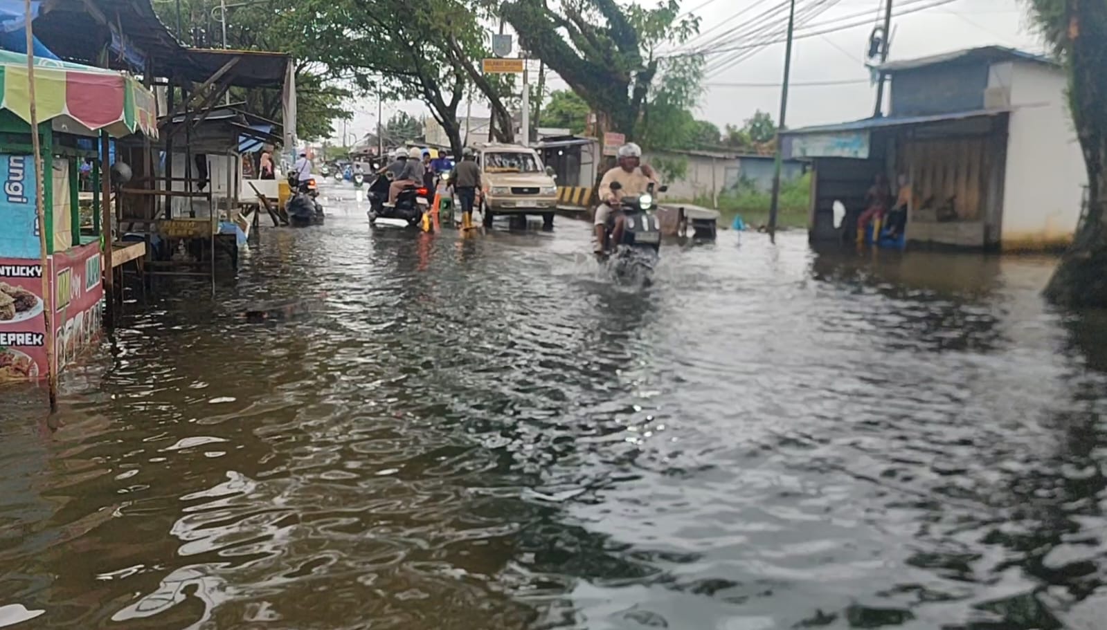 Tak hanya ancaman mesin mati, risiko kecelakaan juga menghantui para pelintas. Salah seorang pengendara motor, Fajar, mengaku sempat panik saat melintasi kawasan tersebut. Ia nyaris terjatuh karena lubang jalan yang tertutup air keruh tidak terlihat.