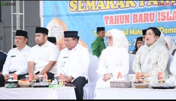 Kuala Kapuas – Bupati Kapuas, H. Muhammad Wiyatno secara resmi melepas 137 kelompok peserta pawai akbar semarak Tahun Baru Islam 1447 Hijriah dengan tema “Damai Bersama Manusia dan alam”