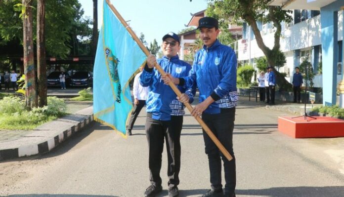 Sebanyak 119 Kontingen Pekan Olahraga Pelajar Daerah (Popda) Kabupaten Banjar Tahun 2024 dilepas Bupati Banjar di halaman kantornya, Rabu (08/05/2024) pagi.