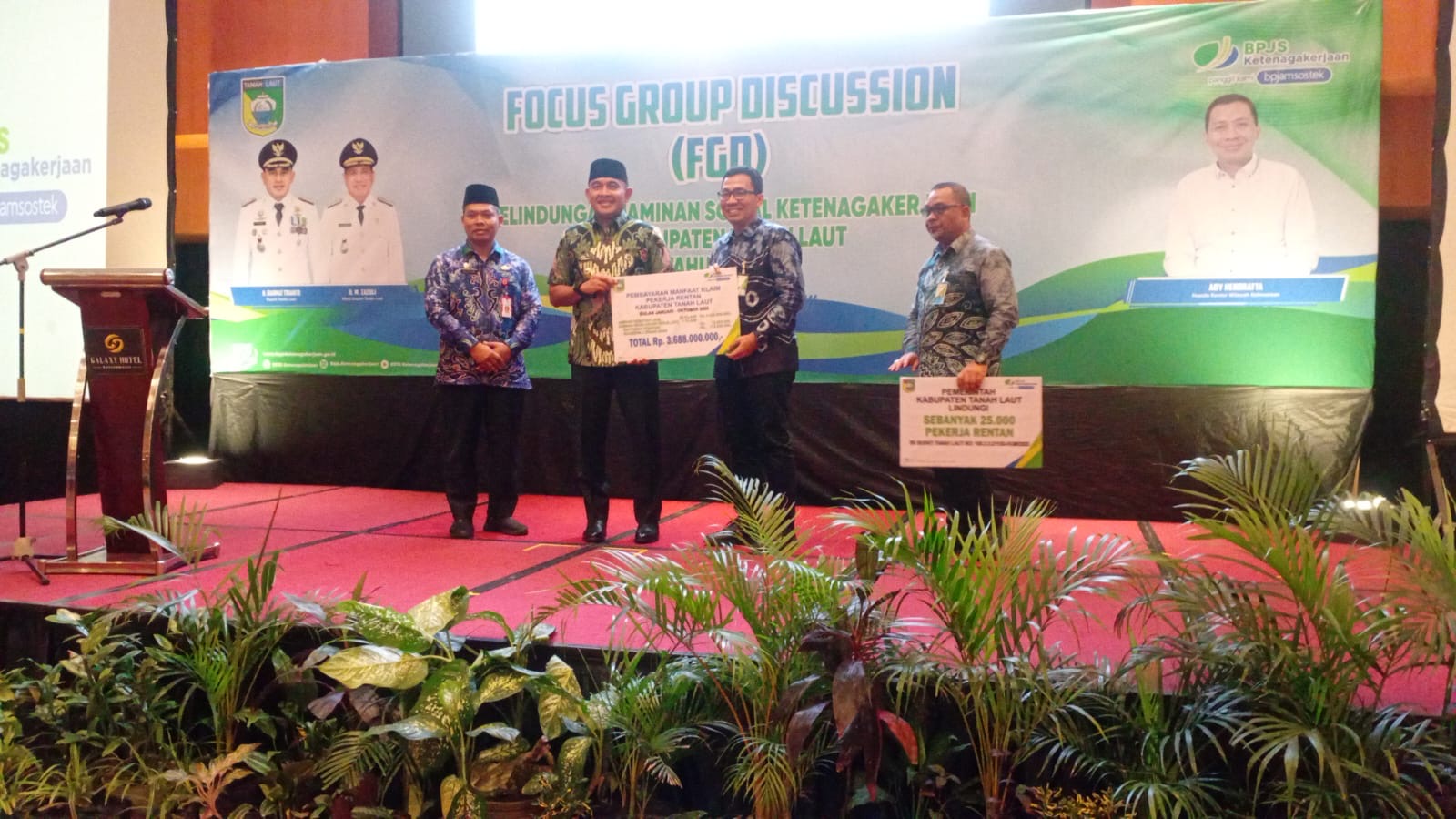 Sebelum memasuki sesi diskusi dan wawancara, dilakukan penyerahan simbolis pembayaran manfaat klaim bagi pekerja rentan di Kabupaten Tanah Laut. Total manfaat yang dibayarkan BPJS Ketenagakerjaan untuk periode Januari hingga Oktober 2025 mencapai Rp 3.688.000.000. Selain itu, juga dilakukan penyerahan sertifikat perlindungan pekerja rentan dari BPJS Ketenagakerjaan kepada Pemerintah Kabupaten Tanah Laut.