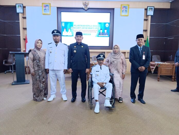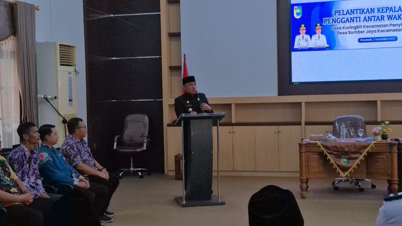 Pelaihari – Bupati Tanah Laut H. Rahmat Triyanto melantik dua Kepala Desa Pergantian Antar Waktu (PAW), yakni Dumbeh sebagai Kepala Desa Kuringkit, Kecamatan Panyipatan, dan Muhammad Helmi sebagai Kepala Desa Sumber Jaya, Kecamatan Kintap, di Kantor BAPERIDA Tanah Laut, Pelaihari, Jumat (7/11/2025).