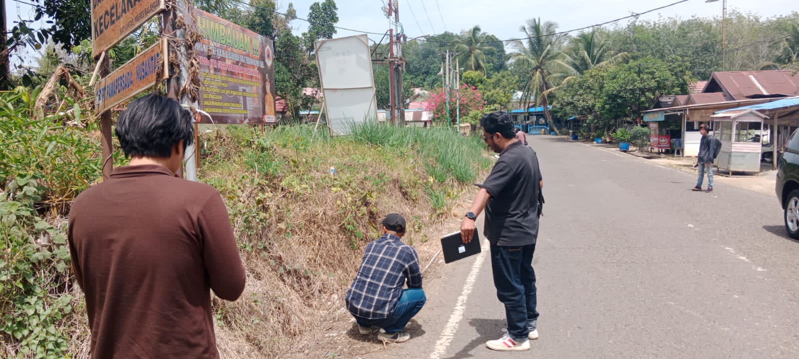 Camat Juai bersama tim konsultan pembangunan tinjau progres pakan kambang waluh di Desa Mungkur Uyam. Foto : Fadil/Habarkalimantan