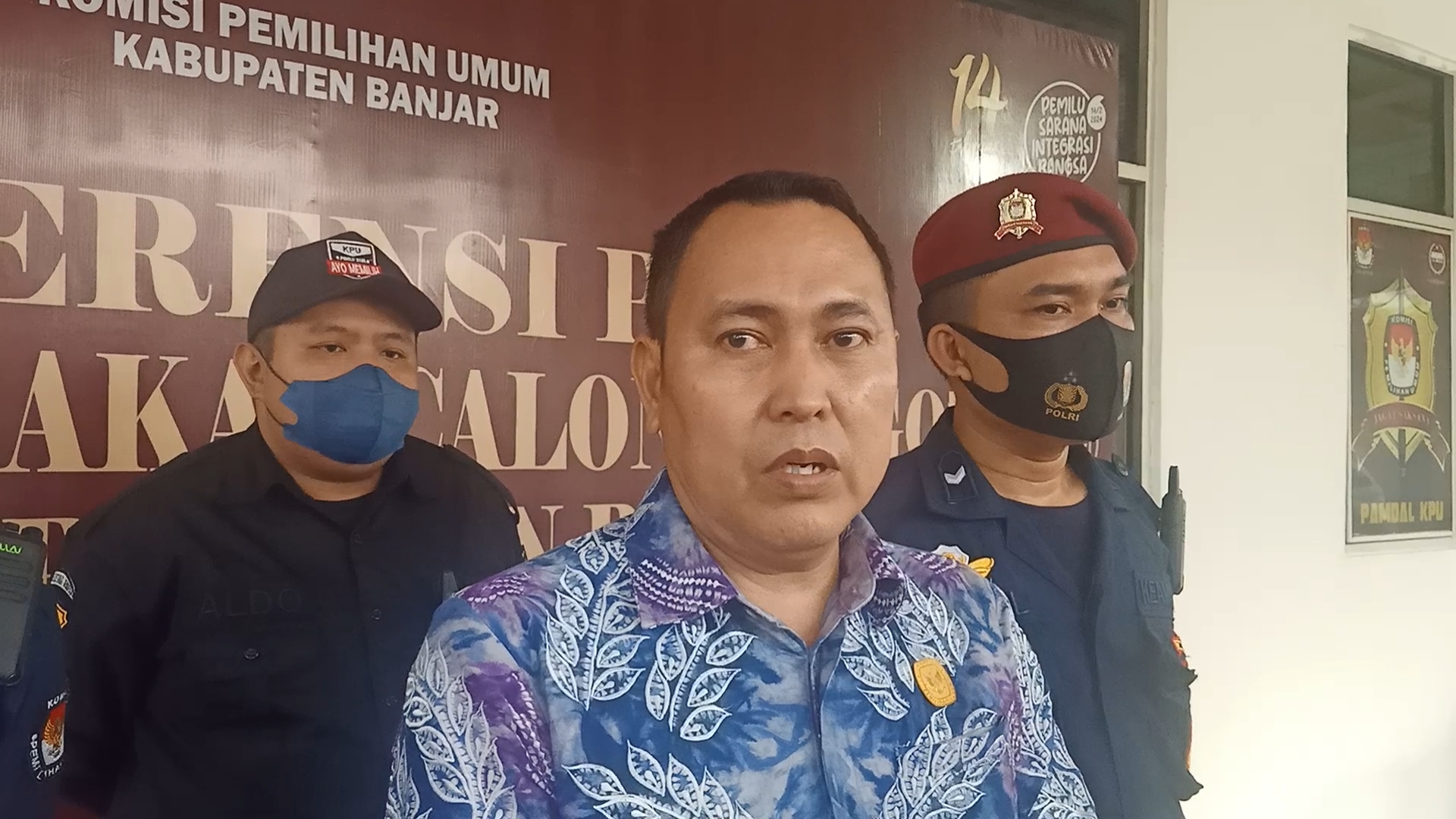 Komisioner KPU Kabupaten Banjar, Abdul Muthalib saat diwawancarai usai penerimaan berkas bacaleg, Jumat (12/5/2023). -Foto : Asp/Hk