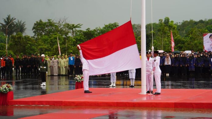 KOTABARU – Pemerintah Kabupaten (Pemkab) Kotabaru menggelar upacara peringatan Hari Ulang Tahun (HUT) ke-80 Proklamasi Kemerdekaan Republik Indonesia di halaman Kantor Bupati Kotabaru, Minggu (17/8/2025).