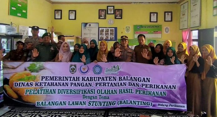 Dalam upaya meningkatkan kesadaran masyarakat tentang pentingnya gizi yang seimbang dan mengatasi masalah stunting, Dinas Ketahanan Pangan, Pertanian, dan Perikanan (DKP3) Balangan menyelenggarakan kegiatan pelatihan diversifikasi olahan hasil perikanan, Kegiatan ini berlangsung di Kantor Desa Bata, Kecamatan Juai, pada hari Selasa (18/07/2023)