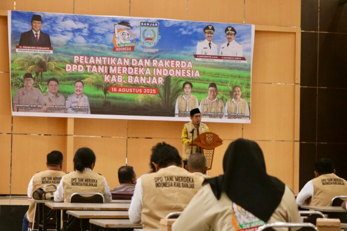 Martapura – Dewan Pimpinan Daerah (DPD) Tani Merdeka Indonesia Kabupaten Banjar resmi dilantik sekaligus menggelar Rapat Kerja Daerah (Rakerda) di Aula KH Kasyful Anwar, Martapura, Sabtu (16/8/2025) pagi. Sebanyak 50 pengurus dikukuhkan langsung oleh Ketua DPW Tani Merdeka Indonesia Kalimantan Selatan, Alin Wijaya.