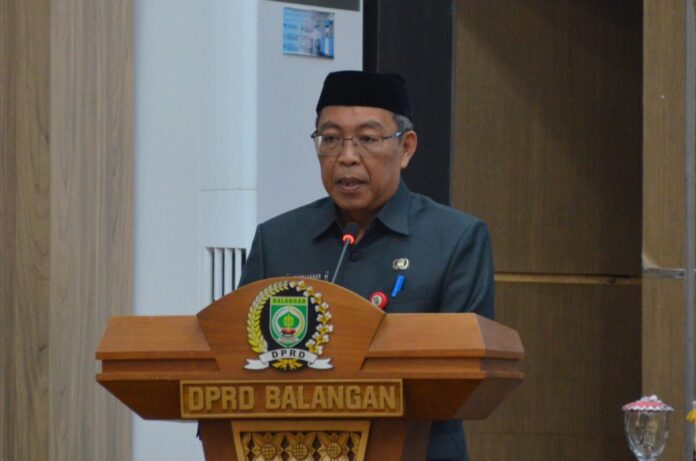 Bupati Balangan Abdul Hadi melalui sambutan yang dibacakan Penjabat Sekda Sufriannor, menyampaikan apresiasi kepada pimpinan dan anggota DPRD atas kerja keras dalam membahas rancangan KUA-PPAS 2026.