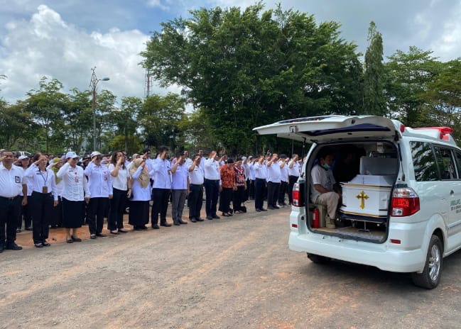 Suasana haru menyelimuti jalannya upacara. Setelah prosesi penghormatan terakhir, jenazah Almarhum rencananya diberangkatkan menuju Kantor Disdukcapil Kapuas.