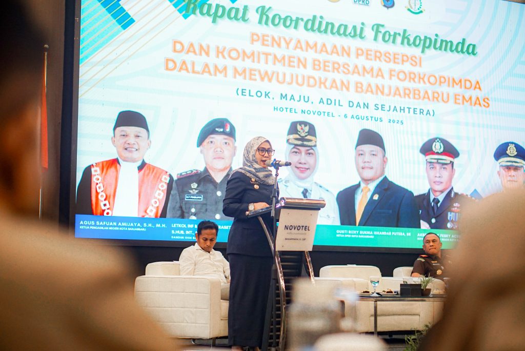BANJARBARU – Pemerintah Kota Banjarbaru menggelar Rapat Koordinasi Forum Koordinasi Pimpinan Daerah (Forkopimda) Kota Banjarbaru Tahun 2025, bertempat di Hotel Novotel Banjarbaru, Rabu (06/08/2025). Rakor ini menjadi yang pertama kali digelar sejak terpilihnya Wali Kota dan Wakil Wali Kota Banjarbaru serta menjadi momentum penting untuk menyamakan persepsi serta memperkuat komitmen bersama dalam mewujudkan visi pembangunan daerah: “Banjarbaru Emas” (Elok, Maju, Adil, dan Sejahtera).