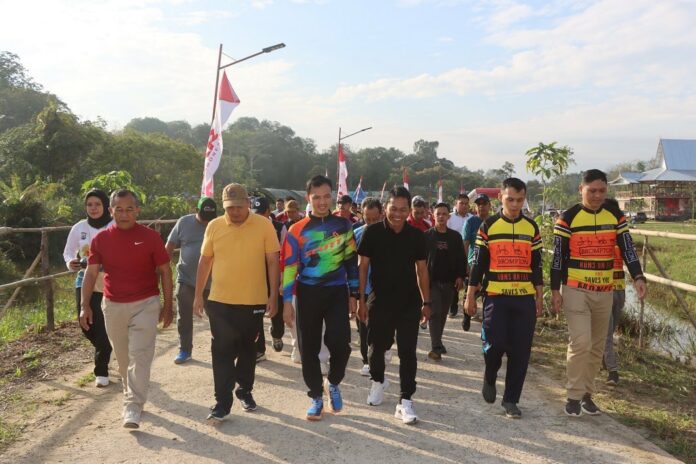 Kegiatan gerak jalan santai dan sepeda santai yang diselenggarakan oleh Polres Balangan untuk memeriahkan Hari Ulang Tahun (HUT) Bhayangkara ke-77, kegiatan tersebut diikuti Forum Koordinasi Pimpinan Daerah (Forkopimda) Kabupaten Balangan serta masyarakat umum, di wisata Al-Fatah Paringin, Kecamatan Paringin Selatan, Minggu (18/6/23).