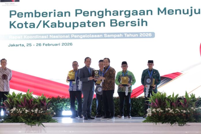 Jakarta – Gubernur Kalsel H. Muhidin meraih penghargaan nasional sebagai Pembina Terbaik Kabupaten/Kota dalam Kinerja Pengelolaan Sampah Tahun 2026 yang diserahkan Menteri Lingkunan Hidup Hanif Faisol Nurofiq di Gedung Balai Kartini Jakarta, Rabu (25/2/2026).