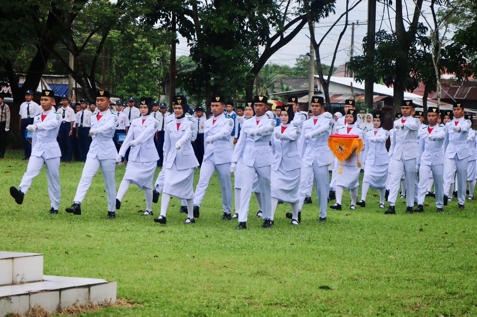 Selain ASN dan jajaran pejabat, tampak pula warga sekitar yang turut menyaksikan pengibaran bendera Merah Putih untuk memperingati hari istimewa ini.