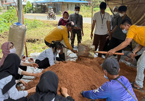Pelatihan dipusatkan di halaman rumah Sekretaris Desa. Sejak hari pertama, warga terlihat bersemangat mempraktikkan cara mencampur serbuk kayu, dedak, dan kapur menjadi baglog. Suasana kebersamaan tampak ketika peserta saling membantu agar hasilnya sesuai dengan arahan instruktur.