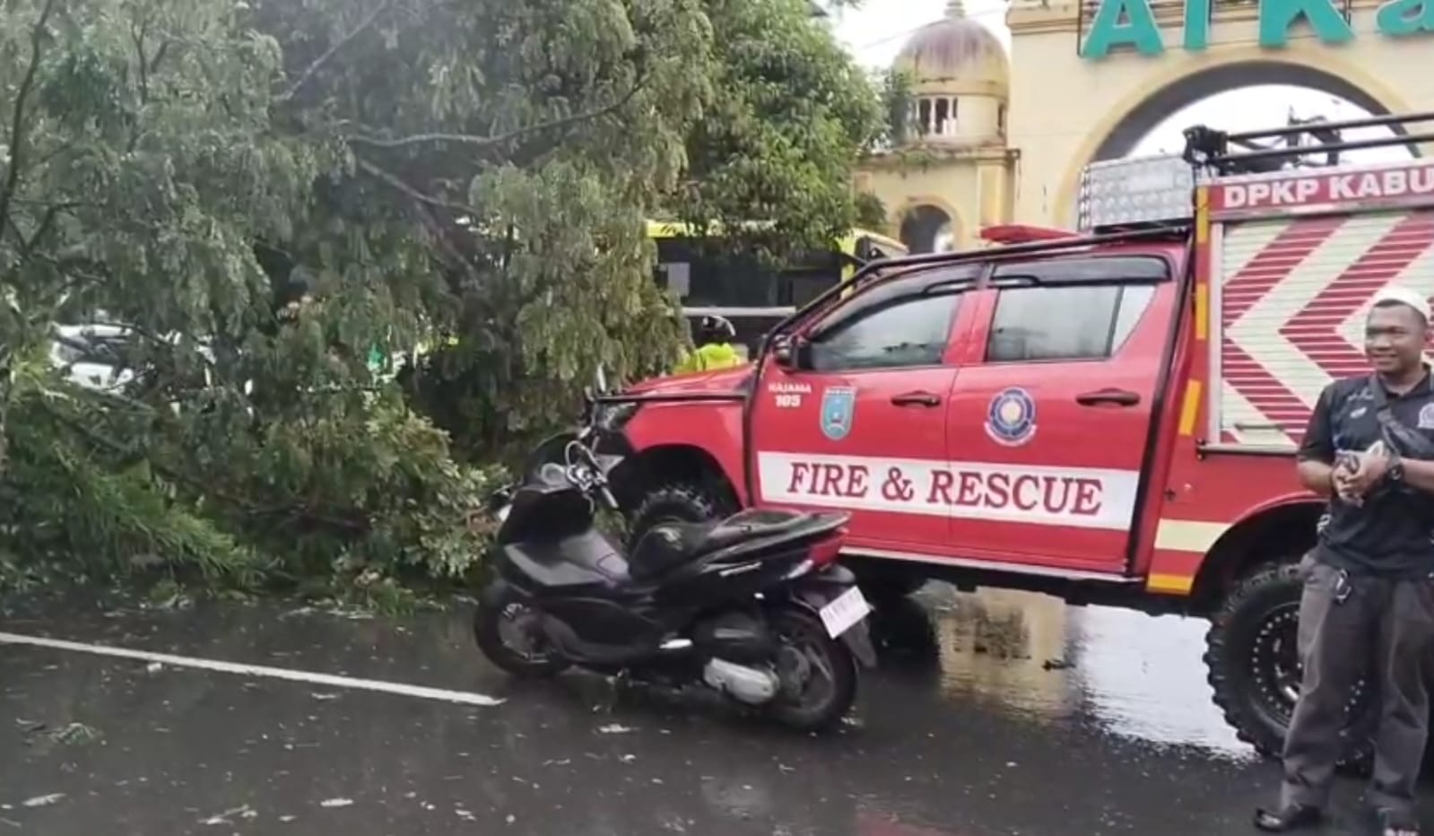 Insiden Pohon Tumbang di Depan Masjid Alkaromah Martapura: Dua Warga dan Satu Mobil Jadi Korban