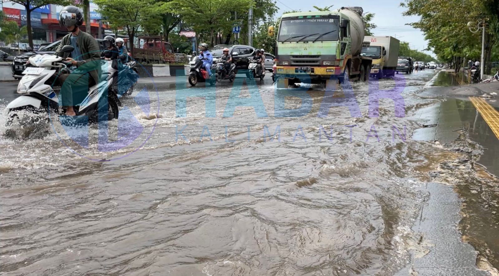 KOTA BANJARMASIN – Hujan deras yang mengguyur Banjarmasin sejak Kamis (4/12/2025) pagi membuat ruas Jalan Ahmad Yani KM 5 hingga KM 6 kembali berubah menjadi ‘kolam dadakan’.