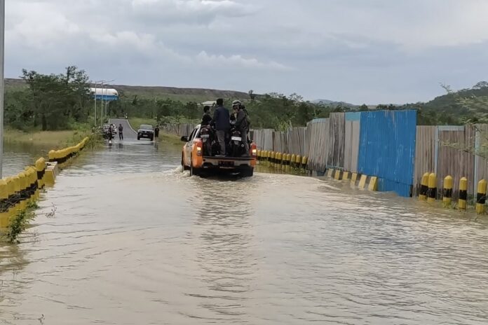 Menurut Rustan, ketinggian air bahkan mencapai hampir satu meter, dengan panjang genangan sekitar 100 hingga 200 meter di satu titik.