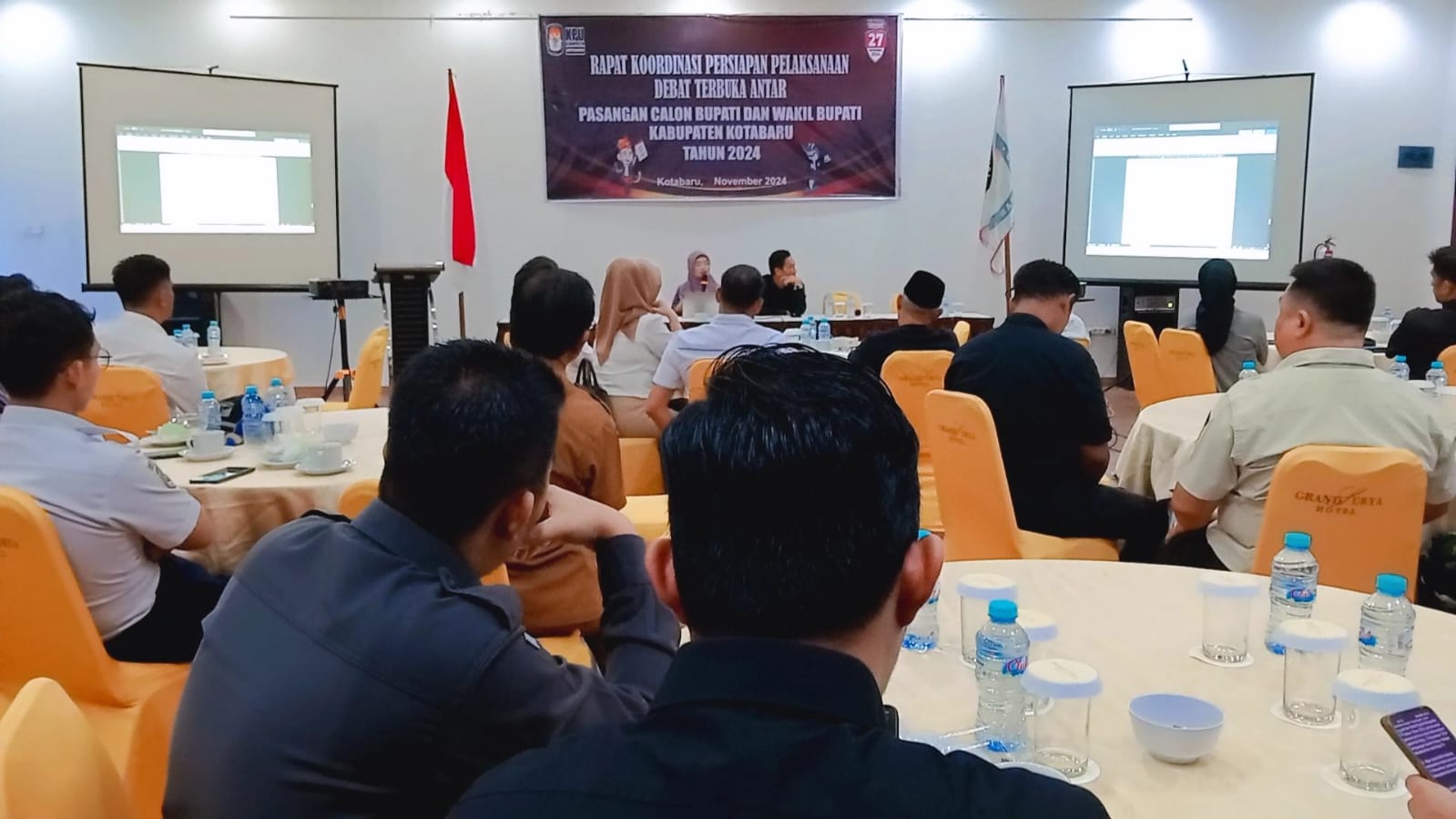 “Rapat Koordinasi ini merupakan tindak lanjut KPU hasil pertemuan bersama tim dari pasangan calon di media center KPU Kotabaru. Dimana untuk putaran pertama kegiatan debat di tanggal 13 November 2024 di Lapangan Basket Indoor di Desa Dirgahayu, sedangkan putaran kedua pada tanggal 23 November untuk tempatnya belum ditentukan,” ucapnya saat membuka rapat.
