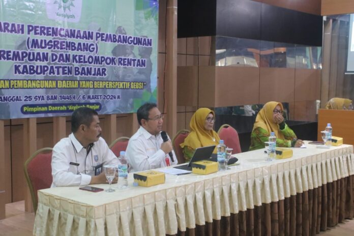 Banjar – Pimpinan Daerah Aisyiyah (PDA) Kabupaten Banjar menggelar Musyawarah Perencanaan Pembangunan Daerah (Musrenbang) bagi Perempuan dan Kelompok Rentan tahun 2024, di Aula Baiman lantai 3 Bappedalitbang Kabupaten Banjar, Rabu (6/3/2024) pagi.