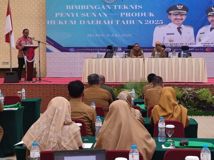 Banjarbaru – Pemerintah Kabupaten Banjar melalui Bagian Hukum Setda Banjar menggelar Bimbingan Teknis (Bimtek) Penyusunan Produk Hukum Daerah Tahun 2025, Selasa (8/7/2025), bertempat di Hotel Roditha Banjarbaru. Kegiatan ini bertujuan untuk meningkatkan kapasitas dan pemahaman Aparatur Sipil Negara (ASN) terkait tata cara dan substansi penyusunan peraturan kepala daerah secara tepat dan sesuai ketentuan.