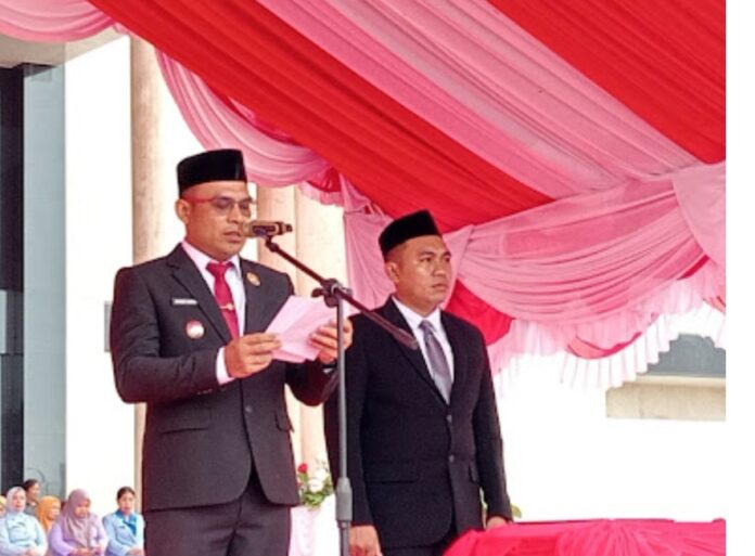 “Para pahlawan mengajarkan bahwa kemerdekaan tidak jatuh dari langit, melainkan lahir dari kesabaran, keberanian, kejujuran, kebersamaan, dan keikhlasan,” demikian kutipan amanat Menteri Sosial yang dibacakan wakil Bupati Syairi Mukhlis.