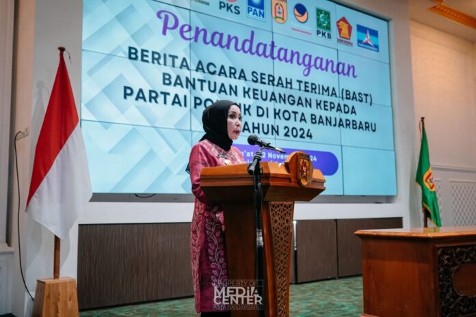 Banjarbaru – Pjs Wali Kota Banjarbaru serahkan hibah bantuan keuangan kepada 9 partai politik yang menduduki Dewan Perwakilan Rakyat Daerah (DPRD)Kota Banjarbaru, bertempat di Aula Gawi Sabarataan, Jumat (22/11/24).