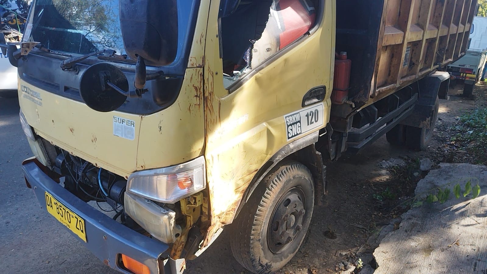 Foto truk yang terlibat kecelakaan di kawasan Jalan Ahmad Yani, Desa Kersik Putih, Kecamatan Batulicin, Kabupaten Tanah Bumbu, tepat di depan SPBU Kersik Putih pada Kamis (23/4/2026) .