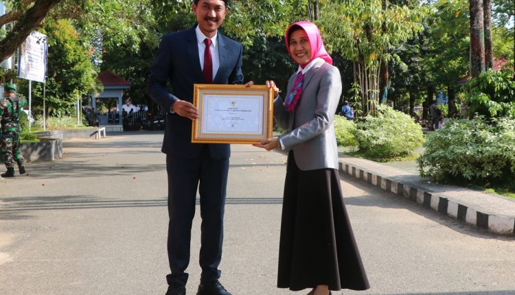 Penghargaan tersebut diserahkan Bupati Banjar H Saidi Mansyur kepada Kepala Dinas Kesehatan Kabupaten Banjar Yasna Kharina.