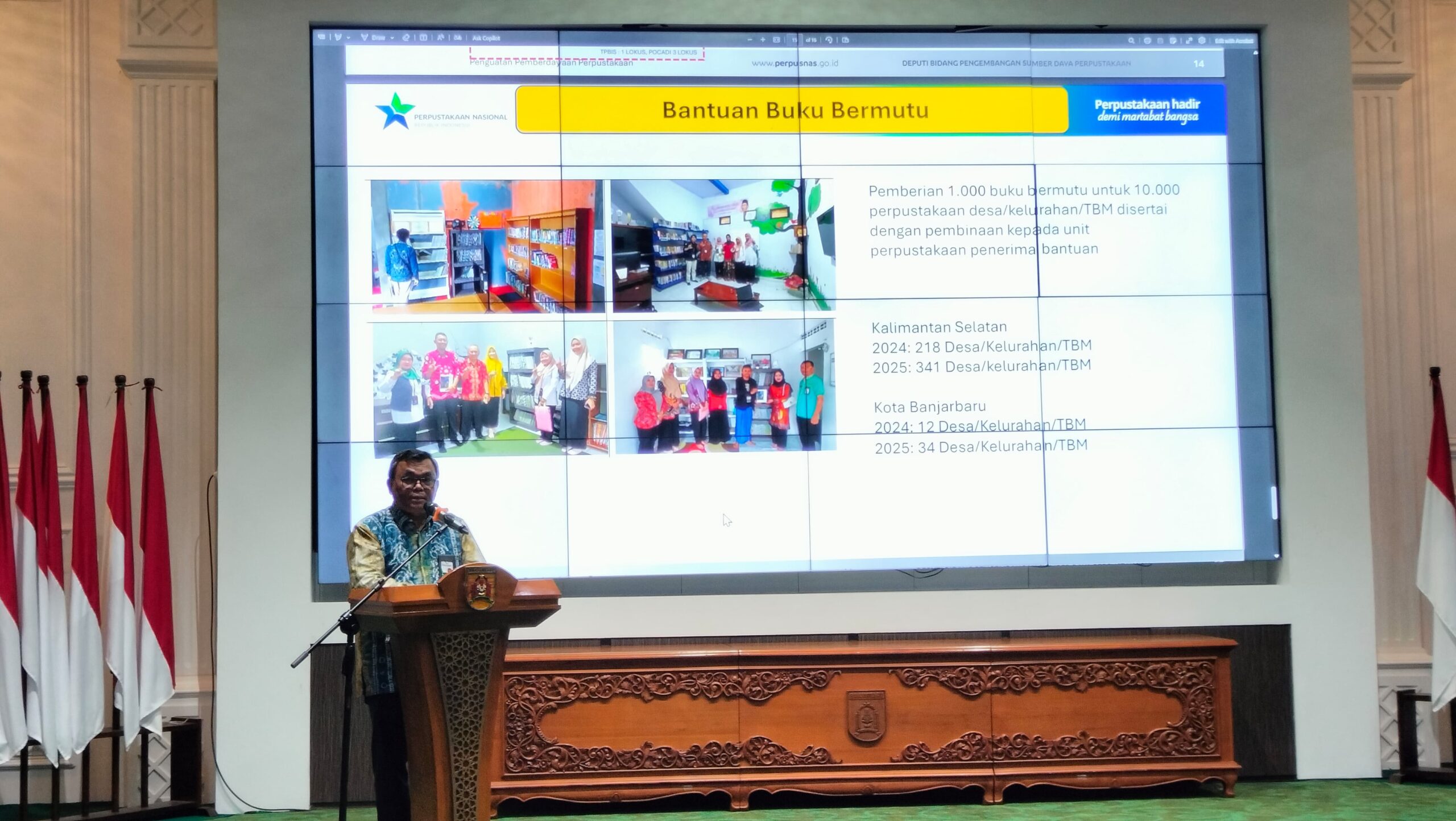 Banjarbaru – Upaya meningkatkan minat baca masyarakat terus digencarkan. Perpustakaan Nasional Republik Indonesia (Perpusnas) menyampaikan program penyaluran 1000 buku bermutu kepada 34 desa, kelurahan, dan Taman Bacaan Masyarakat (TBM) di Kota Banjarbaru. Acara ini berlangsung pada Kamis (2/10/2025), di Aula Gawi Sabarataan, Banjarbaru.