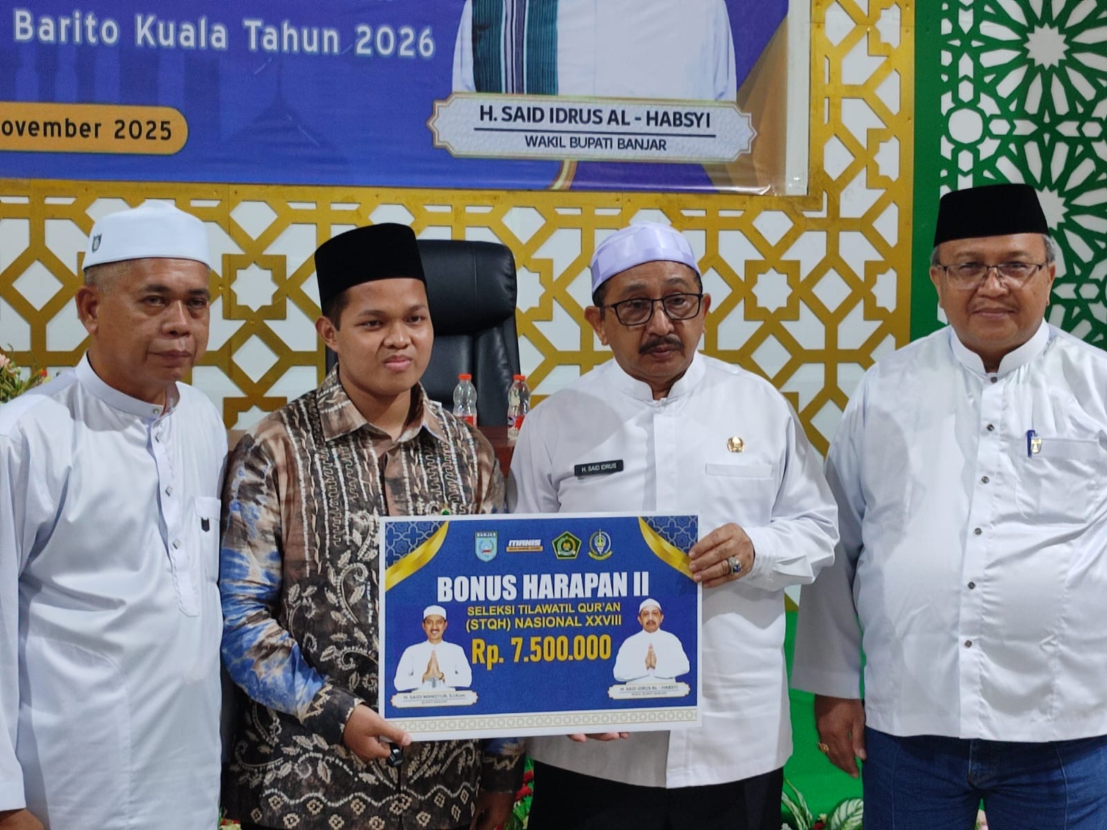 Sebagai bentuk apresiasi, dalam kesempatan tersebut juga dilakukan penyerahan bonus kepada Ahmad Khotib yang berhasil meraih Juara Harapan II pada cabang 10 Juz di Seleksi Tilawatil Quran dan Hadis (STQH) Nasional XXVIII. Bonus pembinaan sebesar Rp7,5 juta tersebut diserahkan secara langsung oleh Wakil Bupati Banjar.