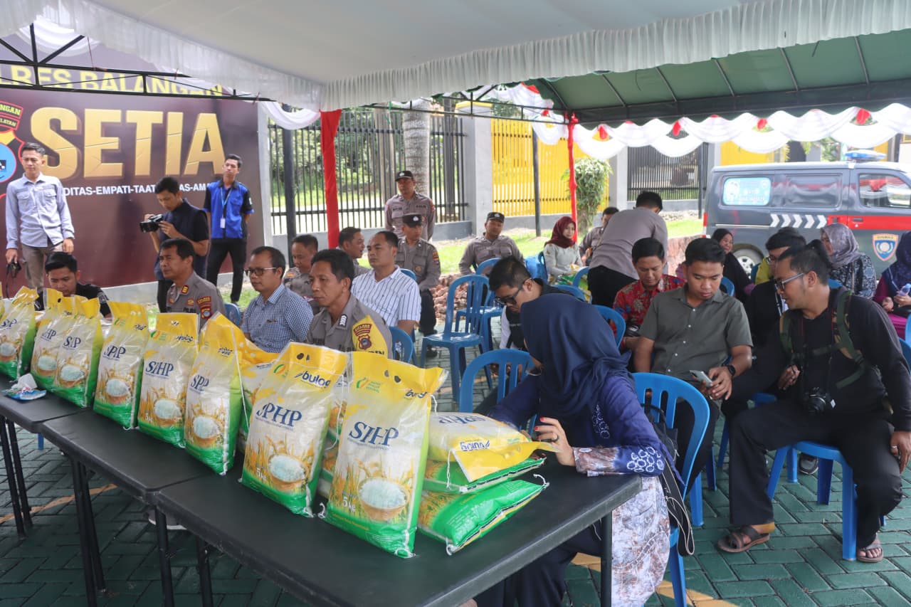Paringin – Polres Balangan bekerja sama dengan Perum Bulog menyalurkan sekitar dua ton beras murah kepada masyarakat melalui Gerakan Pangan Murah (GPM) yang digelar di halaman Mapolres Balangan, Kamis (14/8/2025). Kegiatan ini juga dirangkaikan dengan pasar murah.