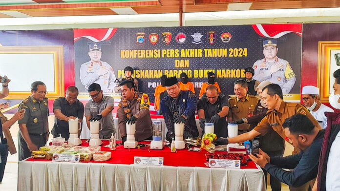 “Kita berhasil mengamankan barang bukti jenis sabu-sabu dengan berat keseluruhan 12.686,47 gram, Narkotika jenis Ekstasi sebanyak 25 (dua puluh lima) butir, serta 4560 (empat ribu lima ratus enam puluh) butir Happy Five atau H-5,” Tuntasnya.
