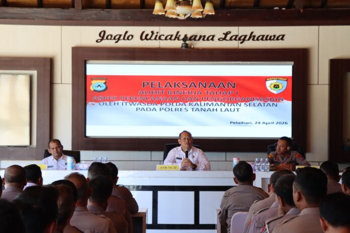 Tanah Laut – Polres Tanah Laut menerima kunjungan Tim Inspektorat Pengawasan Daerah (Itwasda) Polda Kalimantan Selatan dalam rangka Audit Kinerja Tahap I Tahun Anggaran 2026, Jumat (24/4/2026). Kegiatan berlangsung di Joglo Wicaksana Laghawa Mapolres Tanah Laut.