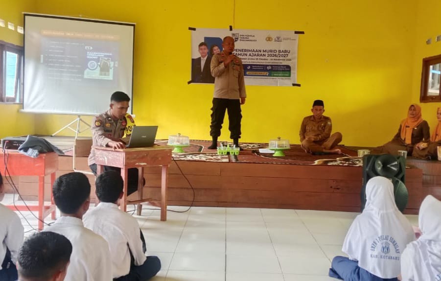 KOTABARU – Memasuki periode penerimaan siswa baru, Polsek Pulau Sembilan gencar melakukan sosialisasi untuk memperkenalkan sekolah unggulan Polri, SMA Kemala Taruna Bhayangkara. Kegiatan ini dilaksanakan di SMP Negeri 1 Pulau Sembilan pada Senin (24/11/2025).