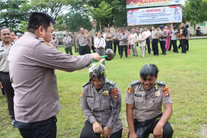 Banjarbaru – Polres Banjarbaru menggelar upacara laporan kenaikan pangkat, untuk anggota Polri periode 1 Januari 2025 dan PNS Polri periode 1 Oktober 2024 di Lapangan Hijau Polres Banjarbaru, Selasa (2/1/2025).
