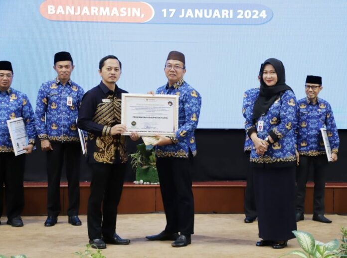 Dalam kesempatan ini, Kabupaten Hulu Sungai Selatan berhasil menjadi Peringkat 1 dengan hasil penilaian 95,07.(Adpim)