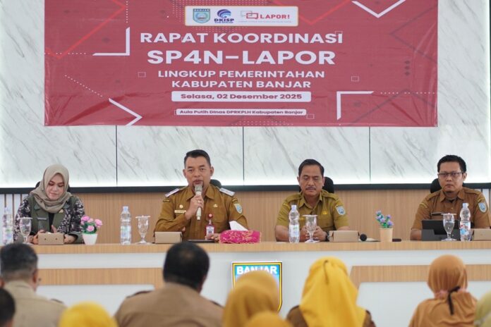 Pernyataan tegas ini disampaikan Yudi saat membuka Rapat Koordinasi (Rakor) Sistem Pengelolaan Pengaduan Pelayanan Publik Nasional (SP4N) – Layanan Aspirasi dan Pengaduan Online Rakyat (LAPOR!) yang berlangsung di Aula Putih Dinas PRKPLH Kabupaten Banjar, Martapura, Selasa (2/12/2025).