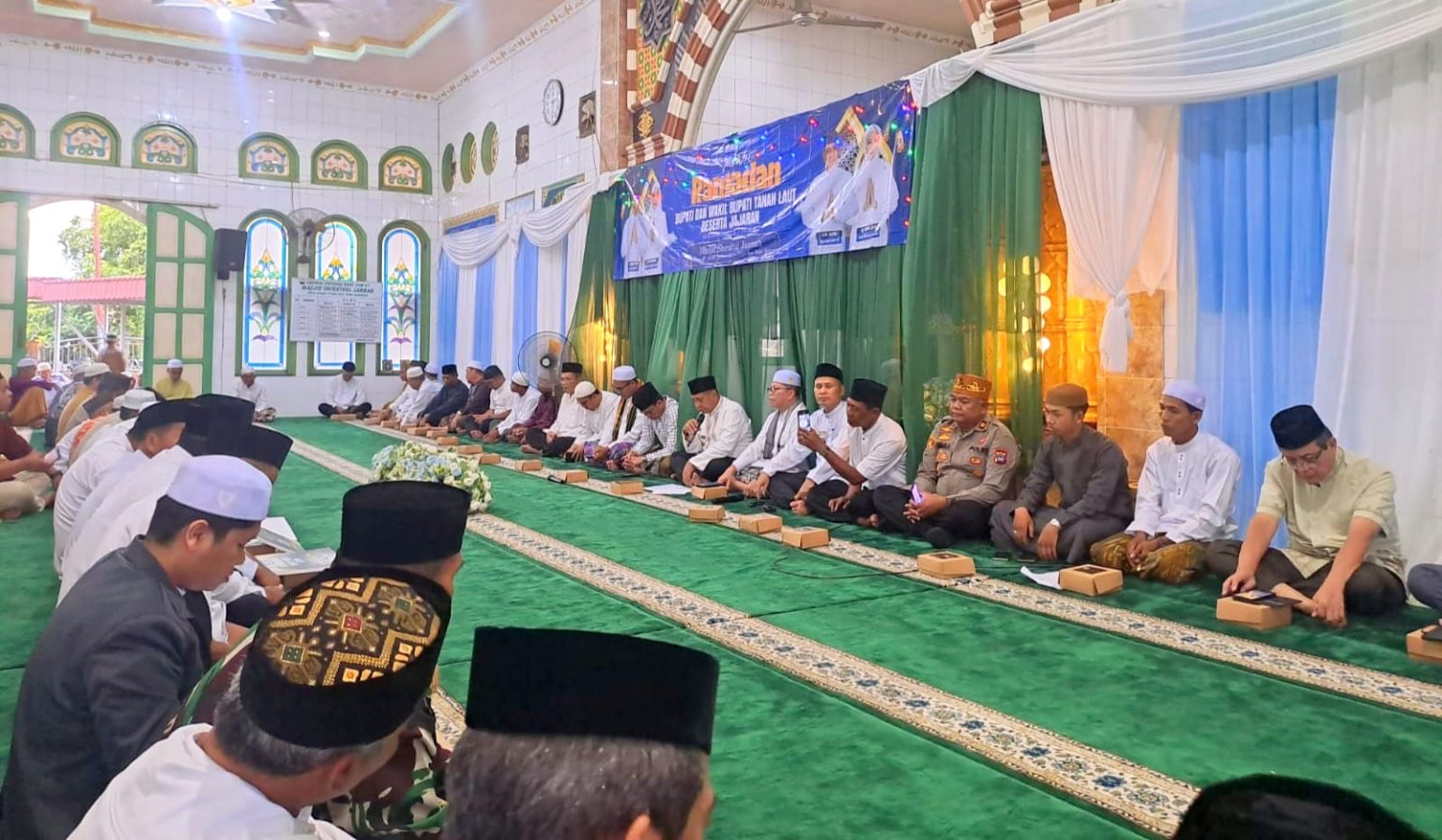 Tanah Laut – Kegiatan Safari Ramadan Pemerintah Kabupaten Tanah Laut kembali digelar, kali ini berlangsung di Masjid Shiratul Jannah, Desa Kurau Utara, Kecamatan Bumi Makmur, Kamis (5/3/2026). Acara tersebut diwarnai suasana kebersamaan antara pemerintah daerah dan masyarakat setempat.