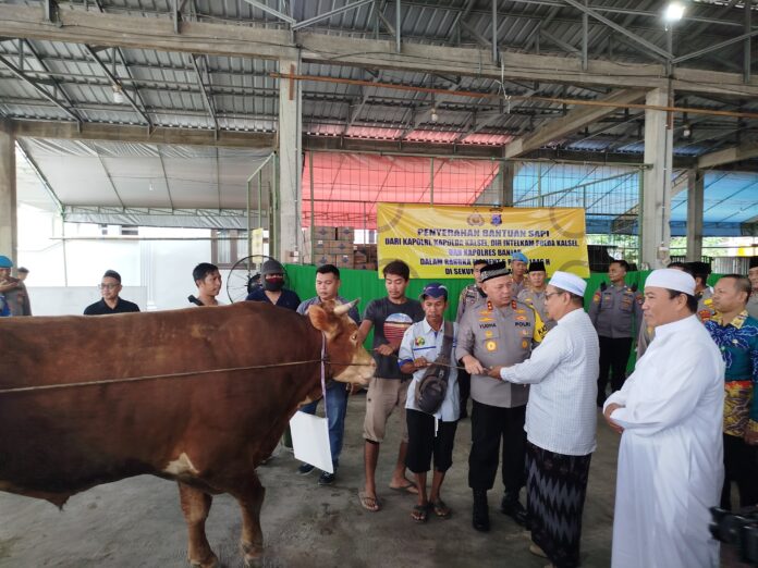 4 ekor sapi ini diserahkan langsung oleh Kapolda Kalsel kepada Imam Mushola Ar-Raudhah Sekumpul Tuan Guru Sa’duddin.