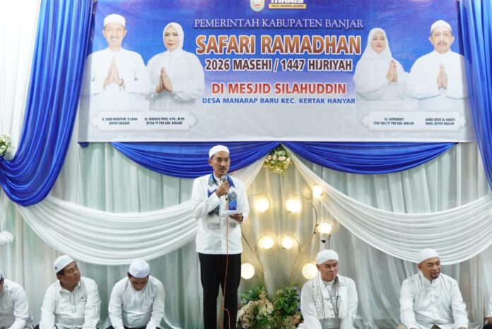 KERTAK HANYAR – Memasuki hari kelima pelaksanaan Safari Ramadan, Bupati Banjar H Saidi Mansyur bersama rombongan pemerintah daerah menyambangi warga di Kecamatan Kertak Hanyar. Kegiatan silaturahmi ini dilangsungkan pada Senin (23/2/2026) sore, bertempat di Masjid Shilahuddin, Desa Manarap Baru.