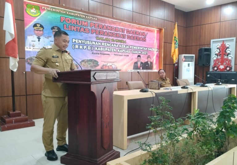 Kuala Kapuas – Pemerintah Kabupaten Kapuas melaksanakan Forum Perangkat Daerah/Lintas Perangkat Daerah dalam rangka penyusunan Rencana Kerja Pemerintah Daerah (RKPD) Kabupaten Kapuas Tahun 2027, bertempat di Aula Bapperida Kapuas, Senin (23/2/2026). Kegiatan ini menjadi forum strategis untuk menyelaraskan usulan program dan kegiatan perangkat daerah dengan hasil Musrenbang tingkat kecamatan yang telah dilaksanakan sebelumnya.