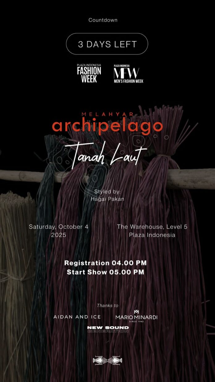 Pelaihari – Kabupaten Tanah Laut (Tala), Kalimantan Selatan, akan tampil dalam ajang bergengsi Plaza Indonesia Fashion Week (PIFW) 2025. Desainer Mel Ahyar lewat label Mel Ahyar Archipelago siap mempersembahkan koleksi “Tanah Laut” pada Sabtu, 4 Oktober 2025 di The Warehouse, Level 5, Plaza Indonesia, Jakarta.