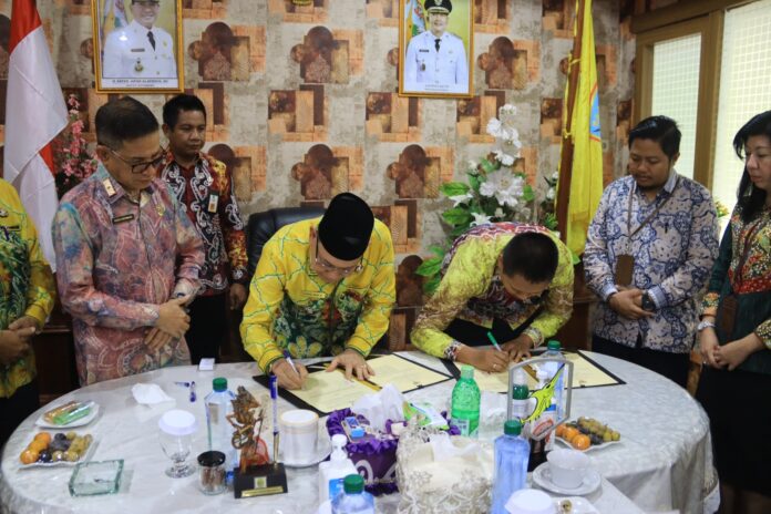 Bupati Kotabaru H. Sayed Ja’far Alaydrus SH menandatangani nota kesepakatan bersama dengan ketua Pengadilan Negeri Kotabaru Bertempat di ruang kerja Bupati Kotabaru, Kamis (19/1/202).