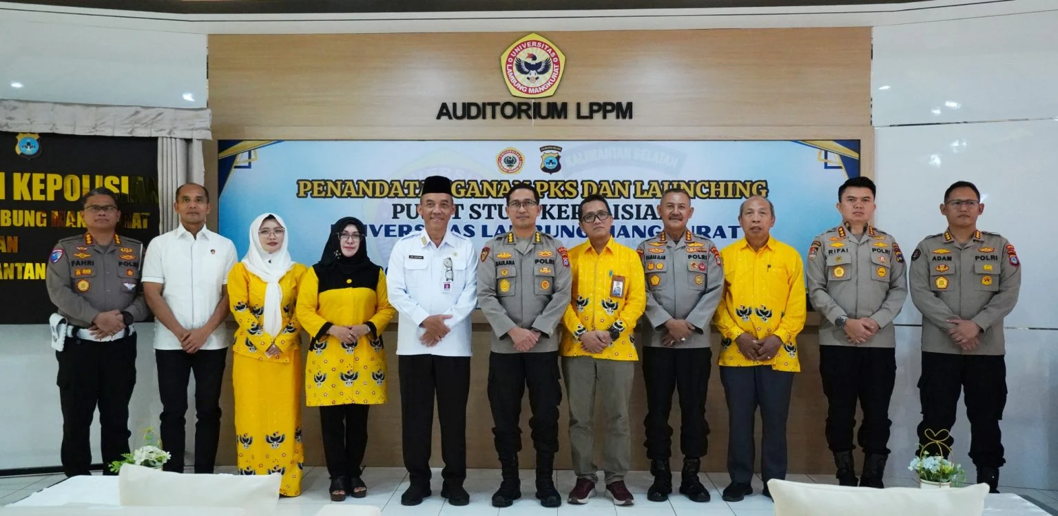 Banjarmasin – Universitas Lambung Mangkurat (ULM) bersama Polda Kalimantan Selatan resmi menandatangani Perjanjian Kerja Sama (PKS) sekaligus meluncurkan Pusat Studi Kepolisian, Rabu (11/3/2026), di Auditorium LPPM ULM.