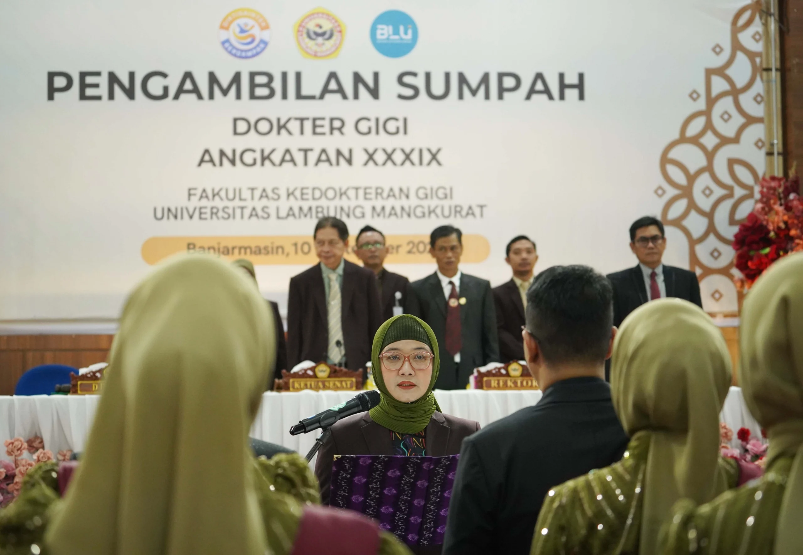Acara ini turut dihadiri Rektor ULM, Prof. Dr. H. Ahmad Alim Bachri, S.E., M.Si., jajaran senat FKG ULM, pimpinan Rumah Sakit Gigi dan Mulut (RSGM) Gusti Hasan Aman, perwakilan RSUD Ulin Banjarmasin, Dinas Kesehatan Provinsi Kalsel, serta keluarga besar sivitas akademika.