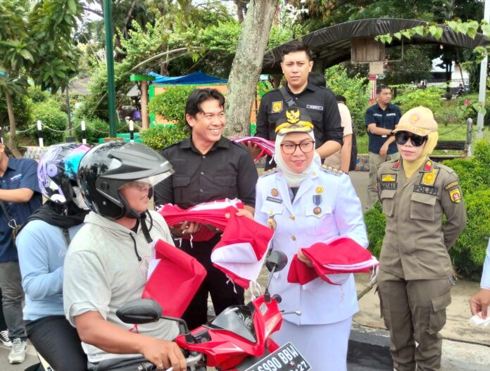 Banjarbaru – Dalam rangka memperingati Hari Kemerdekaan Republik Indonesia yang ke 80, Wali Kota Banjarbaru, Erna Lisa Halaby, membagikan ratusan bendera merah putih gratis kepada masyarakat. Aksi berbagi bendera ini berlangsung di Tugu Titik Nol Banjarbaru, Minggu (17/8/2025), sesaat setelah upacara pengibaran bendera di halaman Balai Kota.