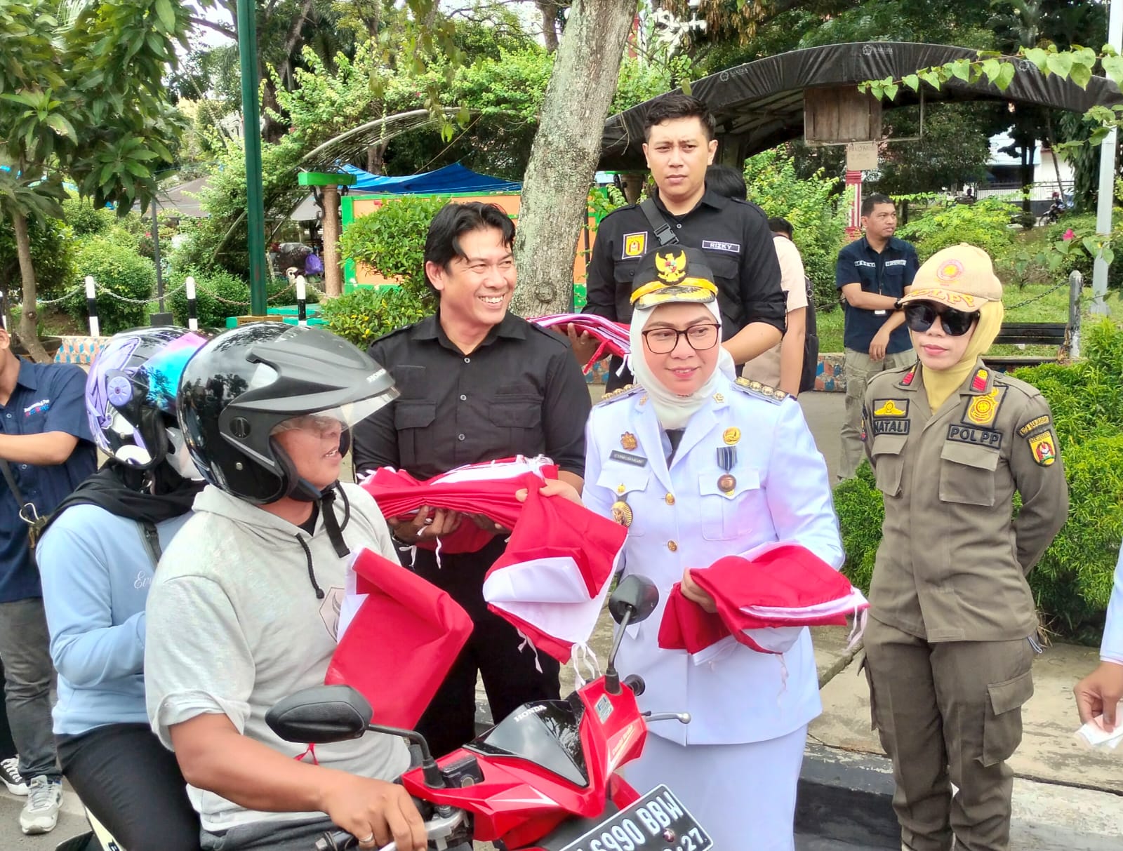“Saya kira ada apa, jalannya tiba-tiba macet. Ternyata Bu Wali Kota lagi bagi-bagi bendera. Saya dapat satu, ya senang sekali. Nanti rencananya mau saya pasang di depan rumah,” ucapnya.